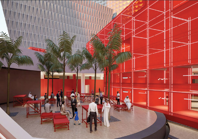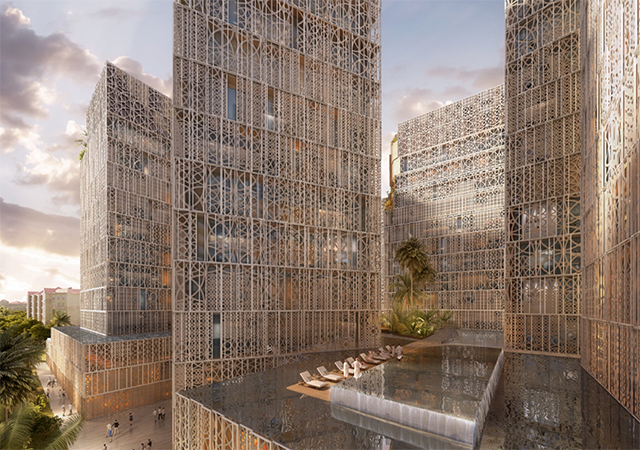 “If you look at them you can see the history of the earth, and things that were alive 180 million years ago,” says Messina. “Most of the materials we use are rich and full of history. They are beautiful and invite you to discover a bit more. When you get closer and closer you realise how rich the stone is when you see how many living creatures are embedded in it. While they were mining the stone they found a 2-m-long fish, perfectly preserved, which they kept in the quarry’s office. Normally, when stone is used here, every panel is exactly the same colour, creating a homogeneous effect at a distance. It appears very flat, and sometimes you can’t tell if it’s concrete or a natural material. Using it in the way that we have done, you can see from far away that it's natural. It has never been used before in a mosaic effect in the Middle East. Everybody is asking how we did it. You have to take some risks sometimes.”