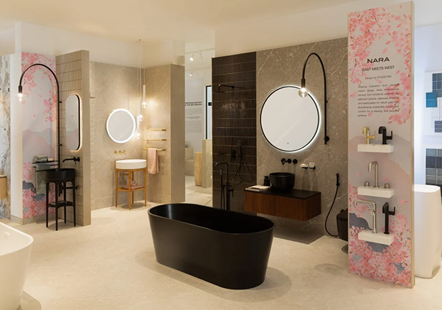 The sublime colours have been echoed in the chairs and sofas in the seating area, and the coconut flooring at the entrance to the lobby has been stained a shade of burgundy to further complement it. While The Monarch Dubai’s interiors were by BBGM, as the firm is based in New York RMJM was asked to supervise them.